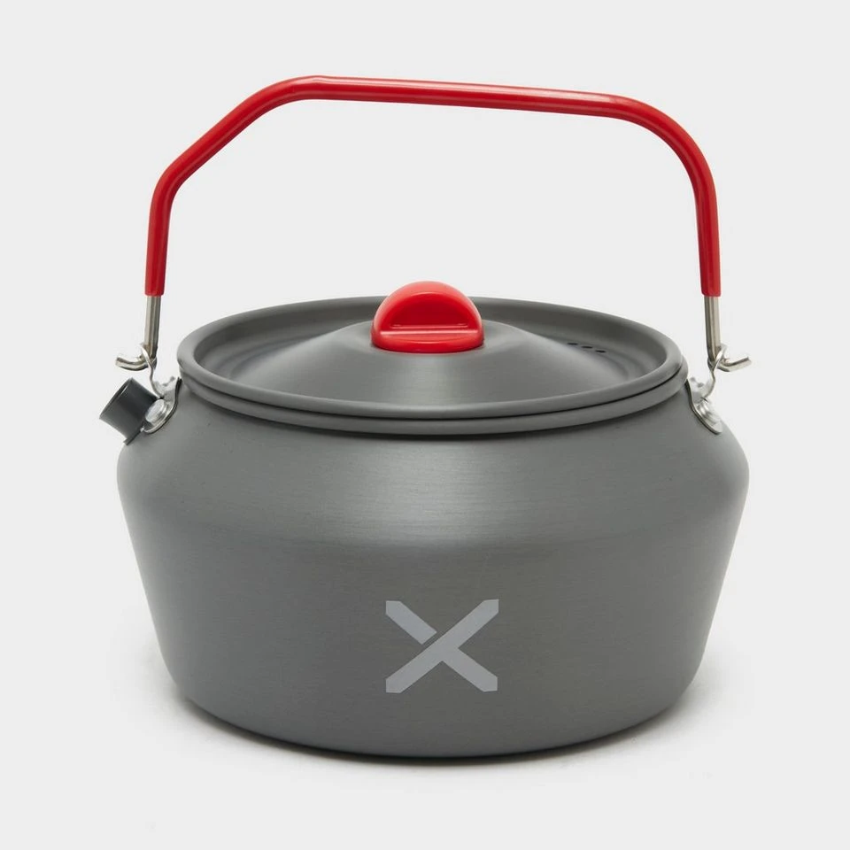 A hard anodised 1.4L aluminium kettle, large enough for a brew or few.