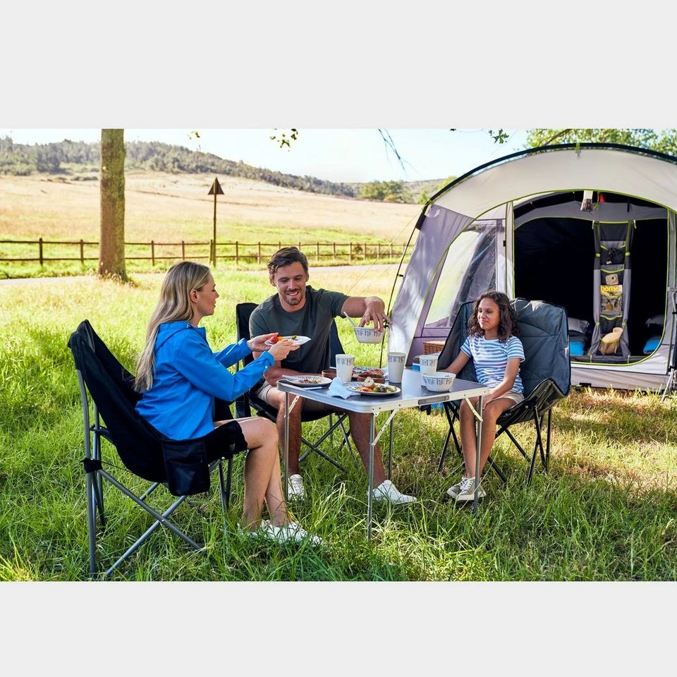 A strong and sturdy picnic table that folds away for easy transportation to and from the campsite.