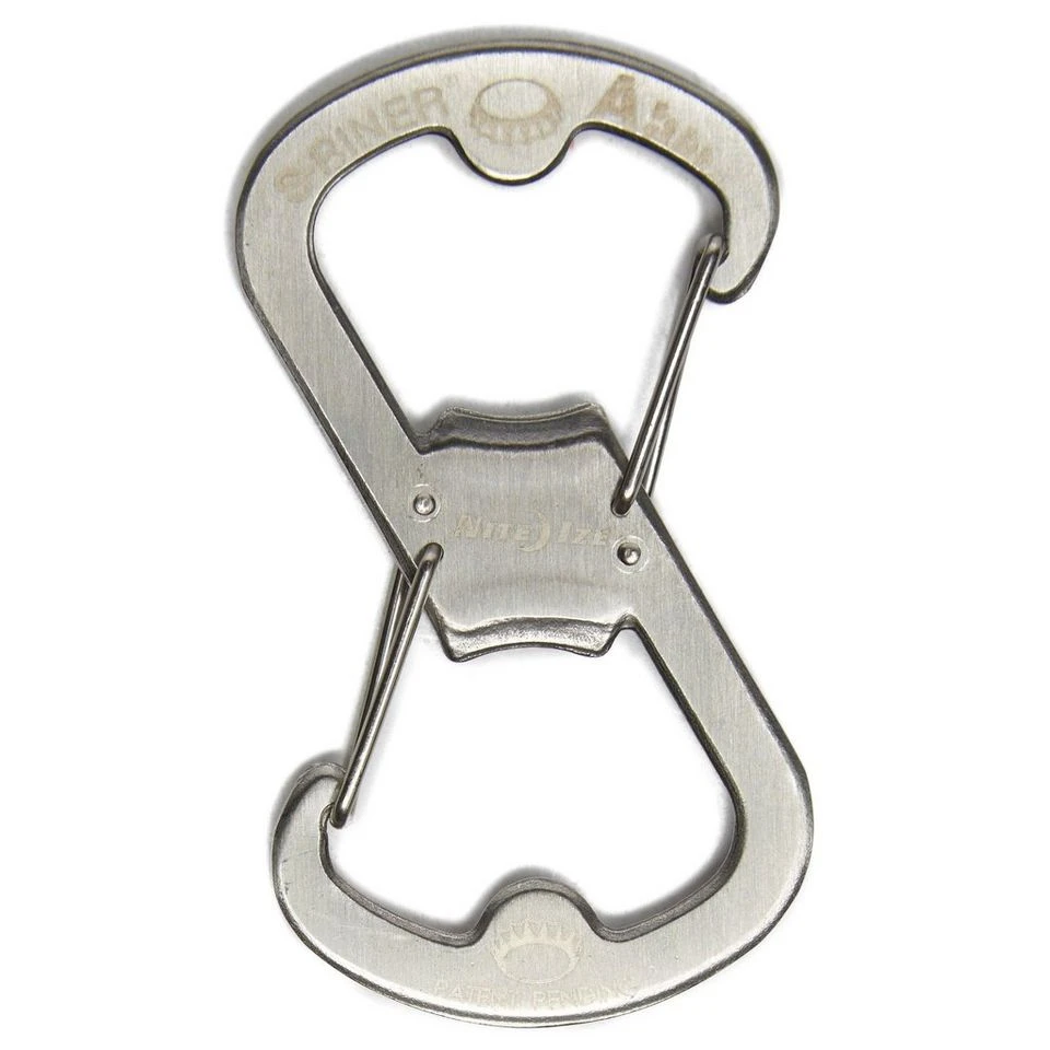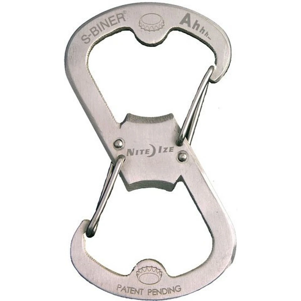 A versatile dual carabiner that doubles up as a bottle opener.